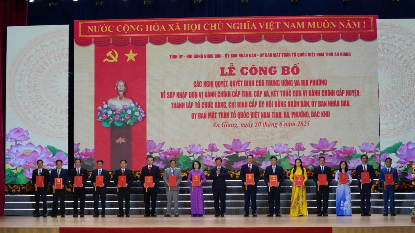 Tại đây, các đại biểu được xem truyền hình trực tiếp Lễ công bố Nghị quyết của Quốc hội về sắp xếp đơn vị hành chính cấp tỉnh. Theo đó, sắp xếp toàn bộ diện tích tự nhiên, quy mô dân số của tình Kiên Giang và An Giang thành tỉnh mới có tên gọi là tỉnh An Giang. Sau khi sắp xếp, tỉnh An Giang có diện tích tự nhiên hơn 9.888km2, quy mô dân số gần 5 triệu người. Bộ Chính trị quyết định thành lập Đảng bộ tỉnh An Giang trên cơ sở hợp nhất Đảng bộ 2 tỉnh An Giang và Kiên Giang. Chỉ định Ban Chấp hành Đảng bộ tỉnh An Giang nhiệm kỳ 2020 – 2025 gồm 67 đồng chí (12 đồng chí trong Ban Thường vụ Tỉnh ủy); đồng chí Nguyễn Tiến Hải, Ủy viên Ban Chấp hành Trung ương Đảng, Bí thư Tỉnh ủy Kiên Giang giữ chức Bí thư Tỉnh ủy An Giang (mới).