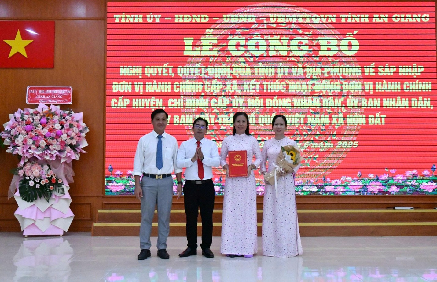 Ngày 30/6, Hoà cùng không khí chung cả nước, tổ chức Lễ công bố Nghị quyết của Ủy ban Thường vụ Quốc hội về việc sắp xếp các đơn vị hành chính cấp tỉnh, xã và các Quyết định của tỉnh về thành lập Đảng bộ xã, phường, đặc khu; Kết thúc hoạt động đơn vị hành chính cấp huyện; Chỉ định nhân sự Ban Chấp hành, Ban Thường vụ, Bí thư, Phó Bí thư; Quyết định chỉ định nhân sự, Ủy ban kiểm tra, Chủ nhiệm, Phó chủ nhiệm Ủy ban kiểm tra; Nghị quyết của Thường trực Hội đồng Nhân dân tỉnh chỉ định Chủ tịch, Phó Chủ tịch, Trưởng ban của Hội đồng nhân dân; Quyết định của Chủ tịch Ủy ban nhân dân tỉnh chỉ định Chủ tịch, các Phó chủ tịch Ủy ban nhân dân xã Hòn Đất.