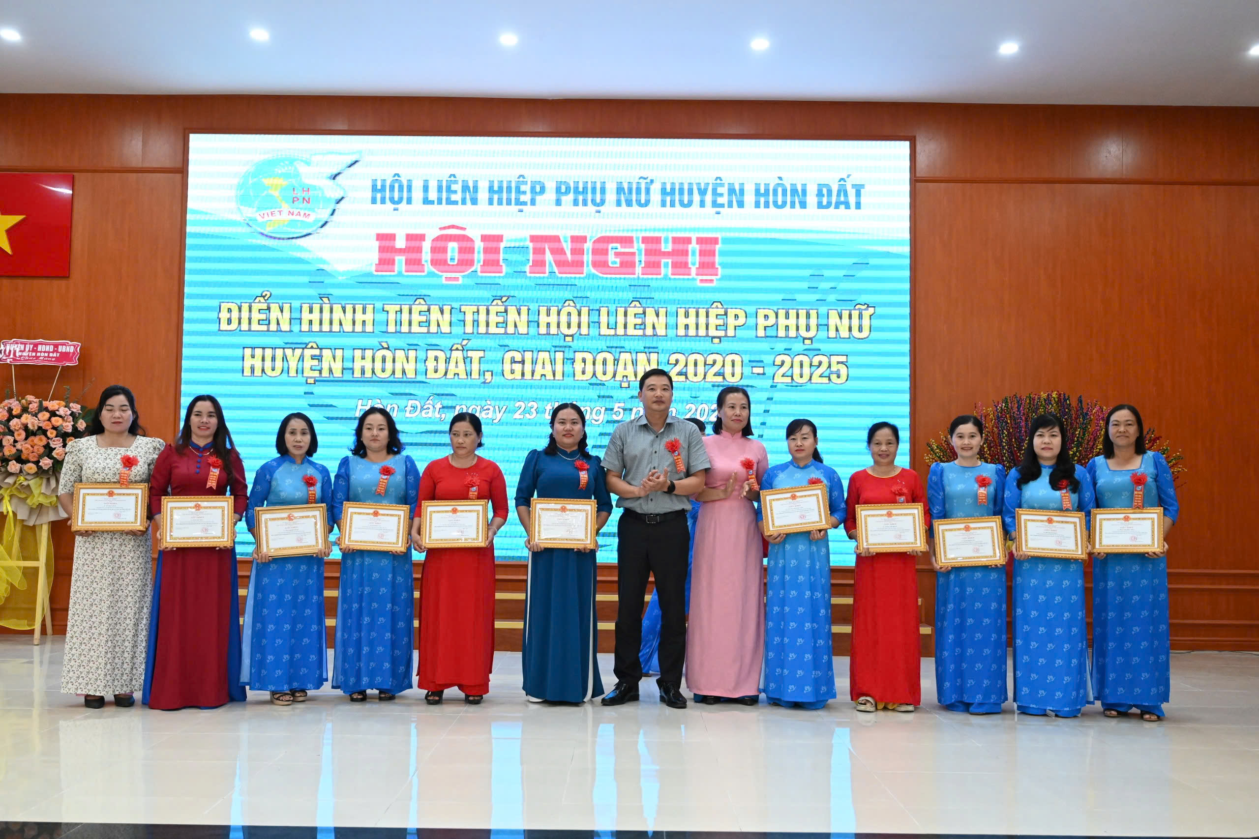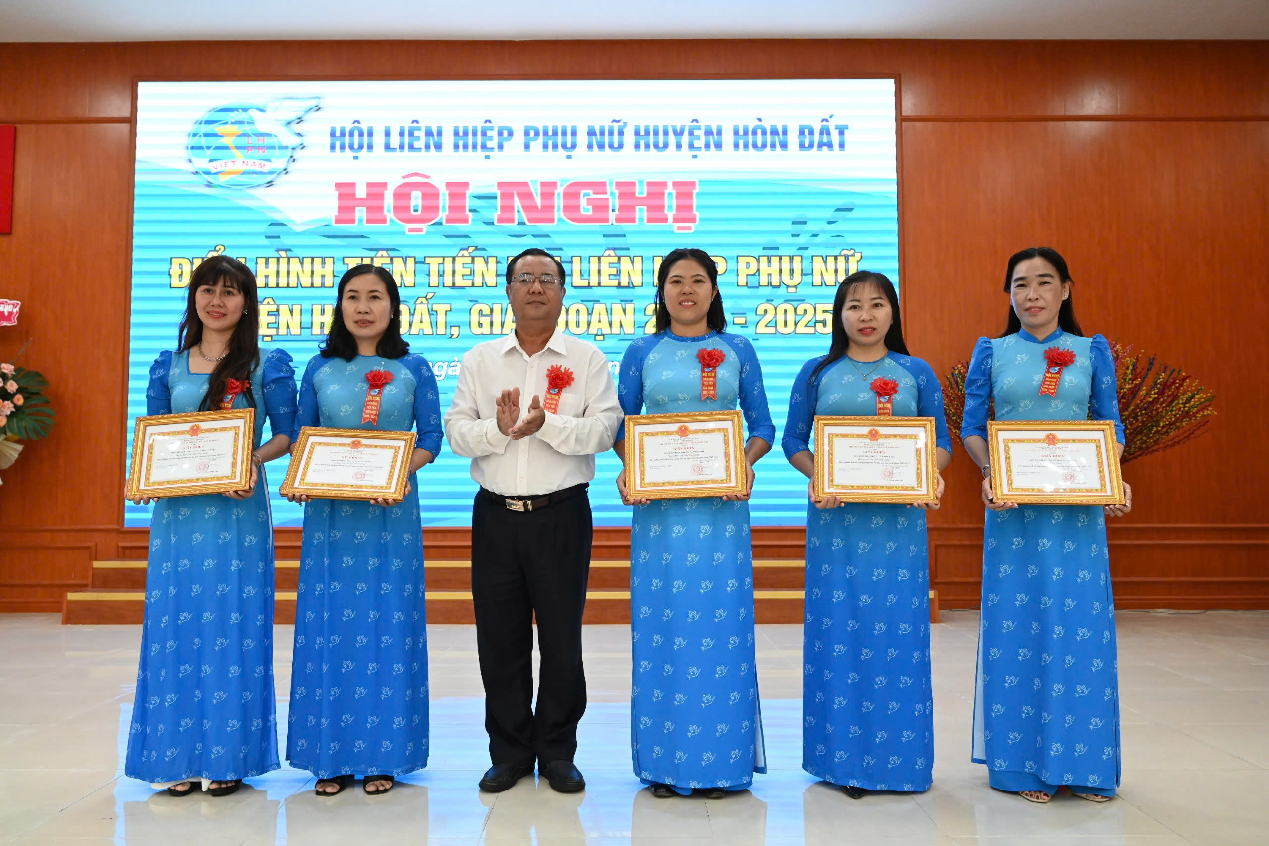 Dịp này, Chủ tịch UBND huyện Hòn Đất tặng giấy khen cho 5 tập thể và 12 cá nhân có thành tích tốt trong phong trào thi đua yêu nước giai đoạn 2020-2025. Ban Thường vụ Hội Liên hiệp Phụ nữ huyện Hòn Đất tặng giấy khen cho 10 cá nhân hoàn thành tốt trong phong trào thi đua yêu nước giai đoạn 2020-2025…/.